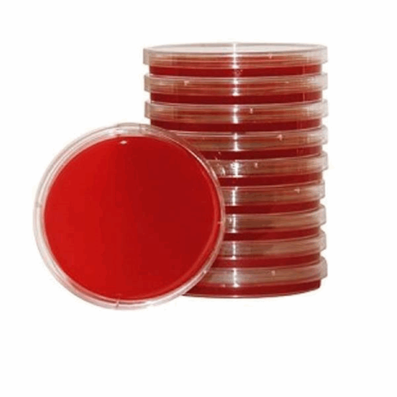 Διχοτομημένο τρυβλίο BLOOD AGAR – MAC CONKEY AGAR No2 για την καλλιέργεια όλων των αερόβιων βακτηρίων και ταυτοποίηση των αιμολυτικών gram(+) κόκκων (BLOOD AGAR). – Για την καλλιέργεια , απομόνωση και ταυτοποίηση των εντεροβακτηριδίων και του εντερόκοκκου (MAC CONKEY AGAR No2).