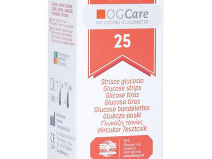 OG-Care Ταινίες Σακχάρου 50 τεμαχίων Ιταλίας. Οι ταινίες μέτρησης πρέπει να χρησιμοποιούνται με το μετρητή γλυκόζης αίματος OG-Care, για την παρακολούθηση της συγκέντρωσης γλυκόζης τριχοειδικού αίματος.