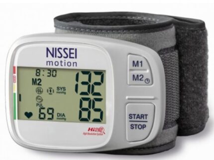 Ψηφιακό πιεσόμετρο καρπού Nissei Motion τελευταίας γενιάς. Εύκολο στη χρήση και γρήγορο στη μέτρηση, εγγυάται πλήρη αξιοπιστία, ακρίβεια και ευκολία χάρη στις καινοτόμες τεχνικές λύσεις του. Το Nissei MOTION παρέχεται με σύστημα Hi-Resolution: μια νέα μέθοδο μέτρησης, η οποία σαρώνει το παλμικό κύμα έξι φορές πιο συχνά από τα συμβατικά όργανα παρακολούθησης της πίεσης του αίματος. Χάρη σε αυτήν την εξαιρετικά ακριβή μέθοδο μέτρησης είναι δυνατό να εντοπιστούν ακανόνιστοι ρυθμοί παλμών, οι οποίοι είναι σημάδια καρδιακών αρρυθμιών (π.χ. κολπική μαρμαρυγή).