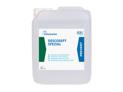 Το Descosept Spezial είναι ένα έτοιμο προς χρήση διάλυμα, χωρίς αιθανόλη για την απολύμανση και τον καθαρισμό σε ιατρικά περιβάλλοντα, ιατρικών συσκευών και όλων των ειδών επιφανειών. Ειδικά για ευαίσθητες στην αλκοόλη ιατρικές συσκευές και επιφάνειες, κατάλληλο και για ακρυλικό γυαλί. Βασίζεται σε ενώσεις τεταρτοταγούς αμμωνίου.