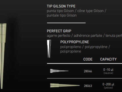 Ρύγχη κίτρινα 0-200 μl για πιπέτες τύπου Gilson.