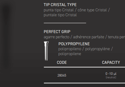 Ρύγχη πιπετών 0-10 μl, τύπου Cristal . Χρώμα: Διαφανές