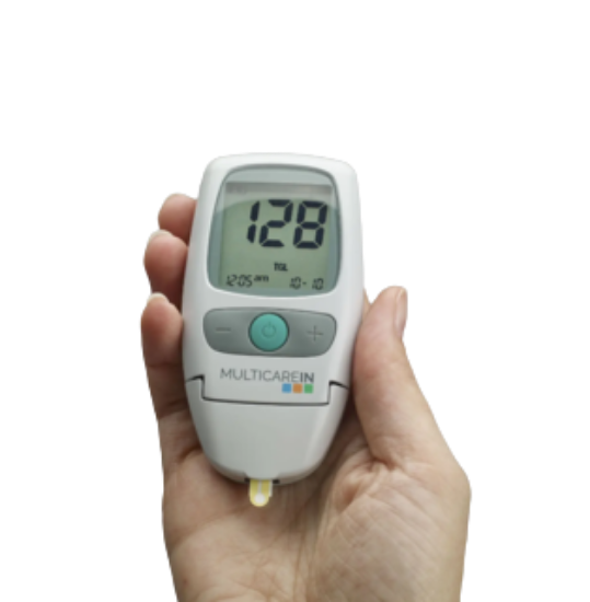 Μέτρηση γλυκόζης στο αίμα με τις ταινίες σακχάρου Multicare in (ηλεκτρονική μέτρηση*).